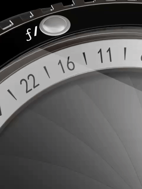 The depth of field scale on the left and the rotor on the back, featuring the iconic image of "Horse in Motion," the first moving image ever taken by Muybridge in 1878, pay tribute to the history of photography in every detail.